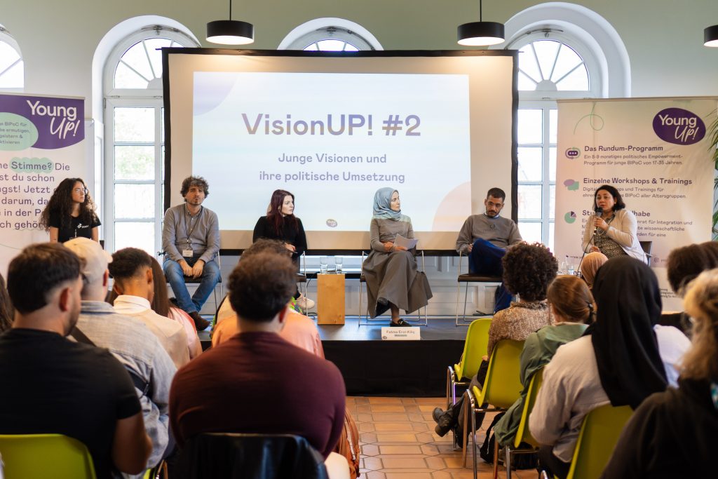 Am Samstagnachmittag ging es dann direkt mit der VisionUP! #2, moderiert von Fatma Erol-Kılıç, weiter, einer teilöffentlichen Veranstaltung im Global Village Berlin, die uns alle begeisterte. Fünf Aktionsgruppen aus unserer Community diskutierten mit Vertreter*innen der Politik und Zivilgesellschaft über aktuelle und zukunftsweisende Themen.